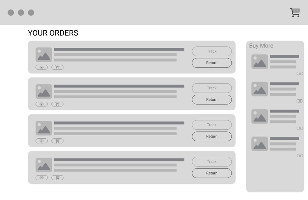 In preparation for this project, I studied many large retailers’ online purchasing and order tracking interfaces. The goal was to determine patterns between them and create an interface that features a familiar structure.